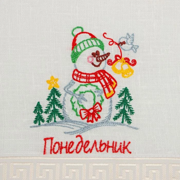 Набор льняных полотенец Снеговики 42х42см-7шт, лён 50%, хлопок 50%, 180г/м2 7108968