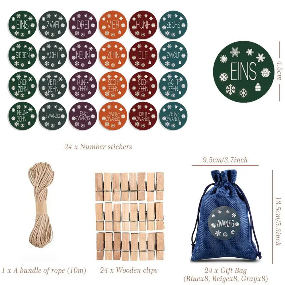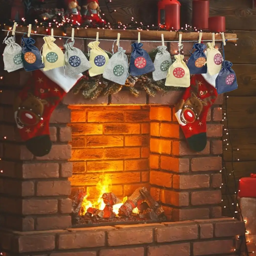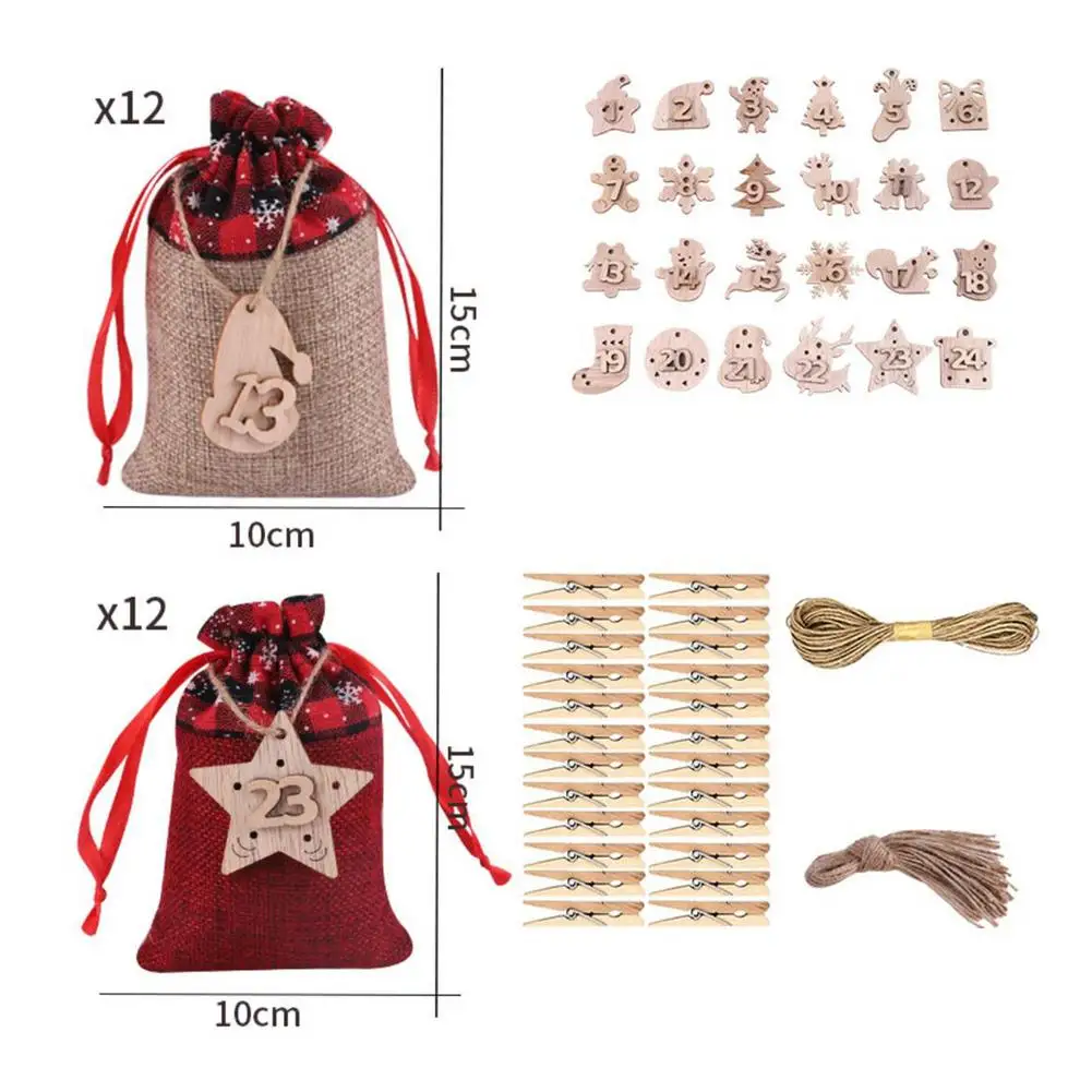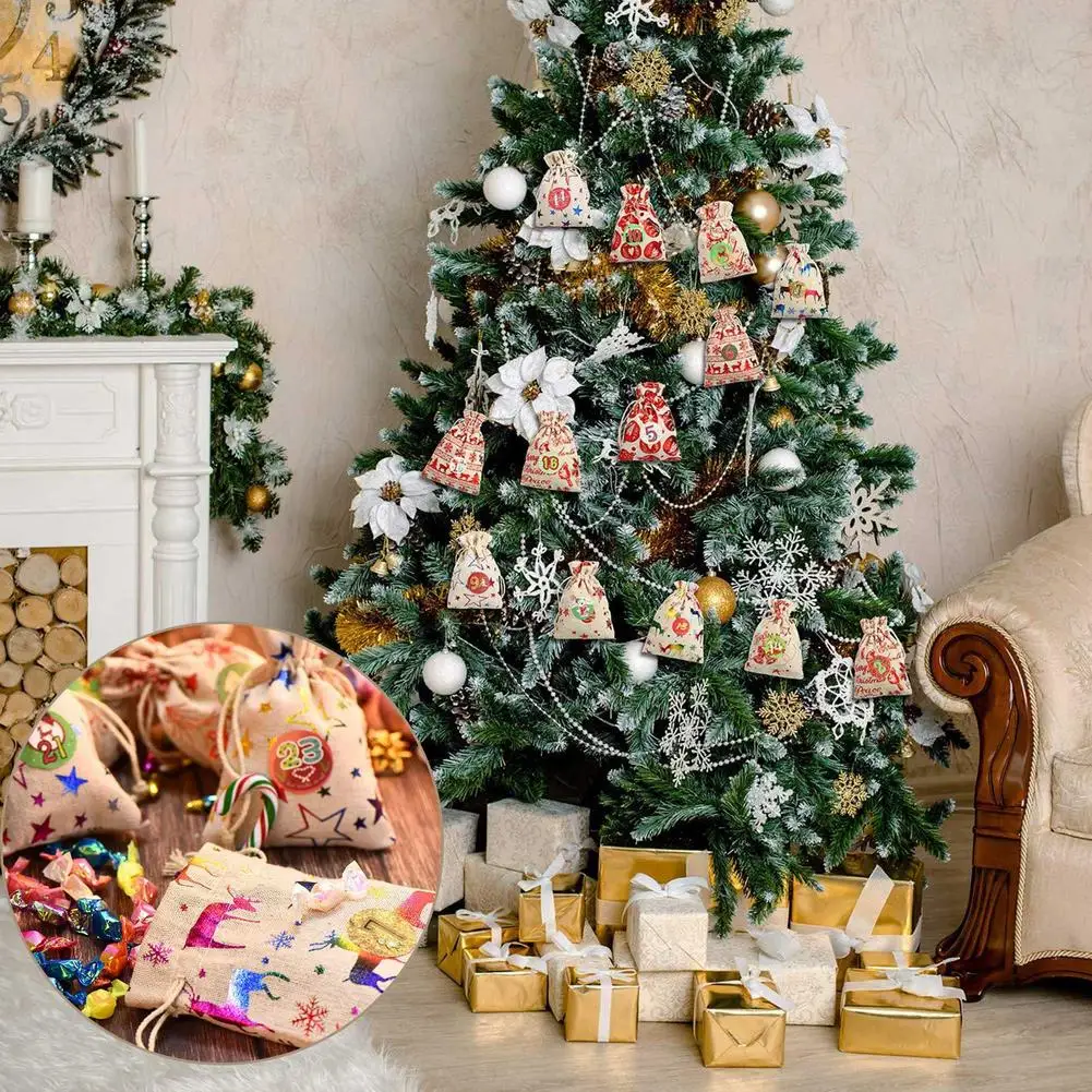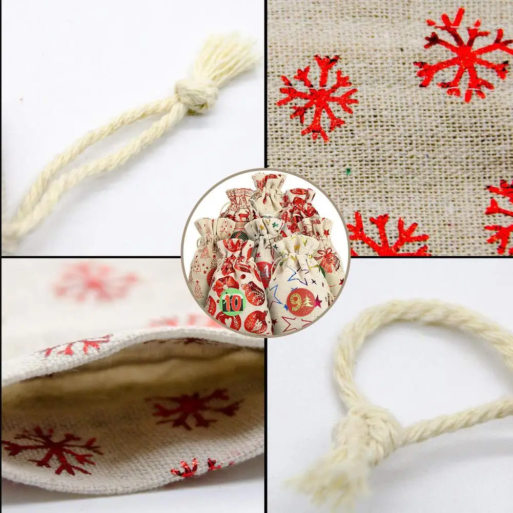 24Psc Рождественский календарь Хлопковая Сумка для белья календарь мешок для конфет Рождество Подарочная сумка Рождественский календарь Navidad Noel