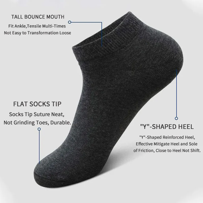 Носки мужские короткие хлопковые, черные, белые, мягкие, дышащие, 5...