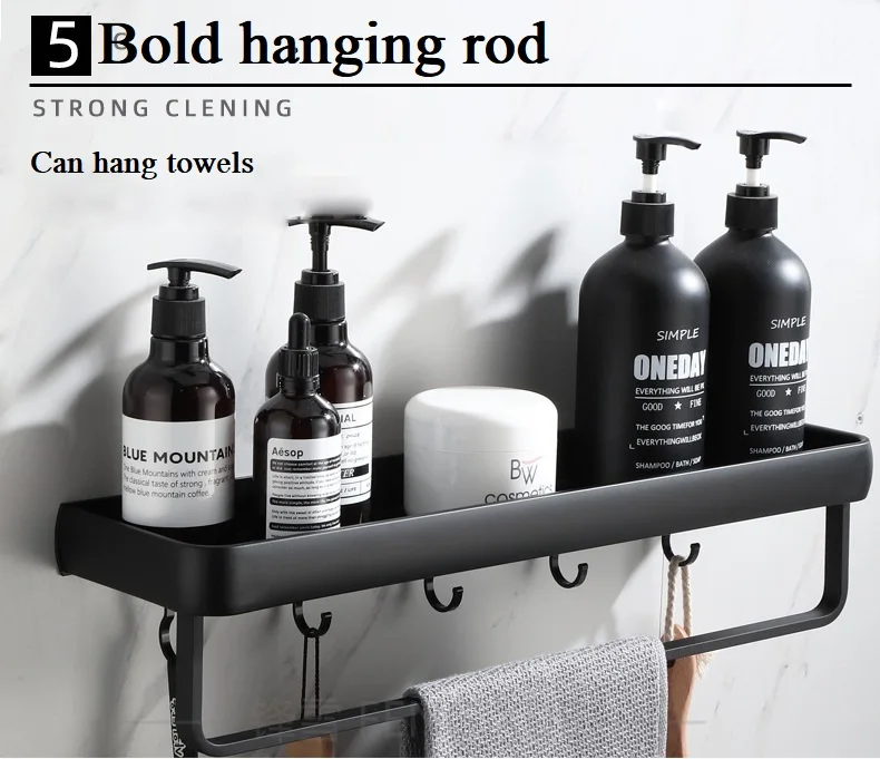 Полка для ванной комнаты, без сверла, органайзер, стойка для хранения душа, черные угловые полки, Настенный алюминиевый держатель для шампуня