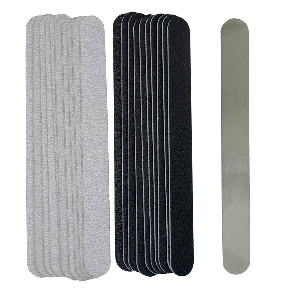 Прямая сменная пилка для ногтей 100180240 10 шт., сераячерная Съемная наждачная бумага с ручкой из нержавеющей стали, металлические шлифовальные пилки