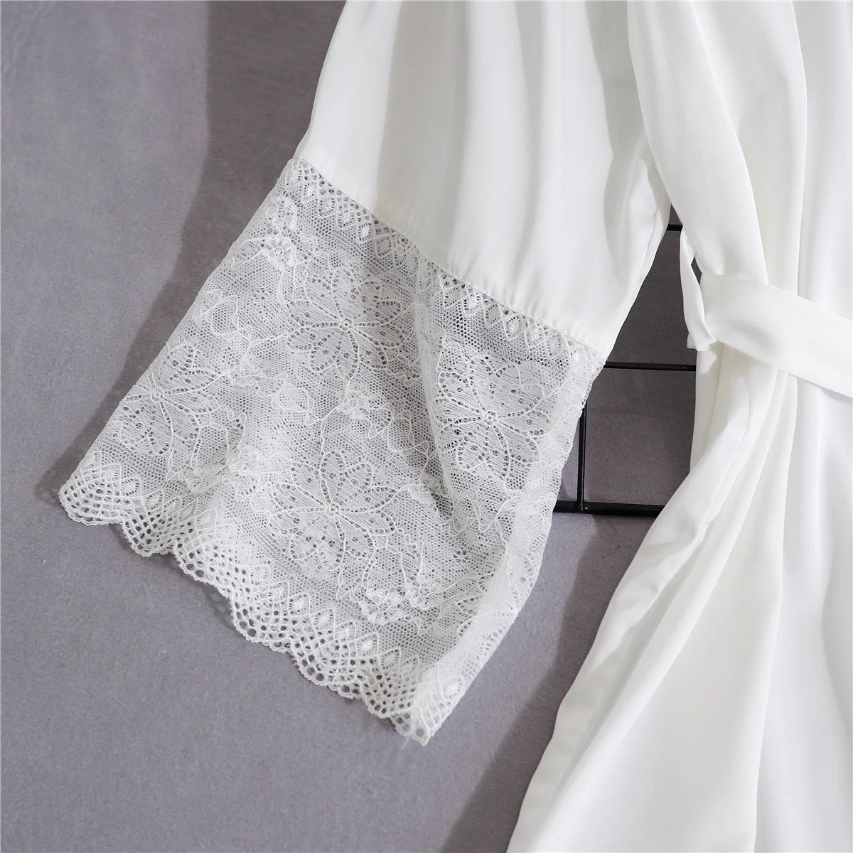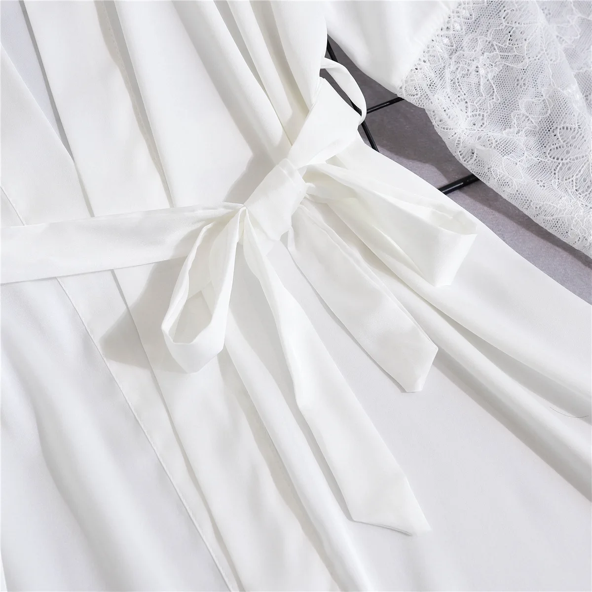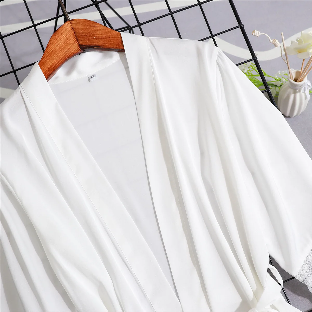 Женский кружевной халат из искусственного шелка и ночные комплекты, Сексуальная атласная Летняя женская ночная рубашка, кардиган, одежда для сна для отдыха, ночная рубашка с длинным рукавом