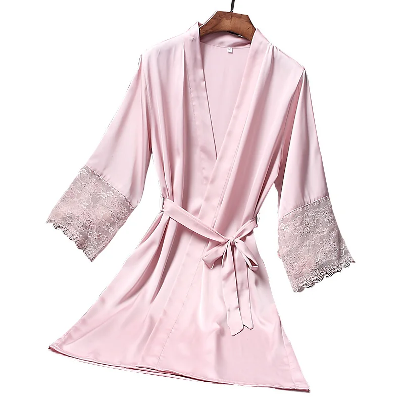 Мягкая ночная рубашка из пеньюара, кружевное кимоно с коротким рука...