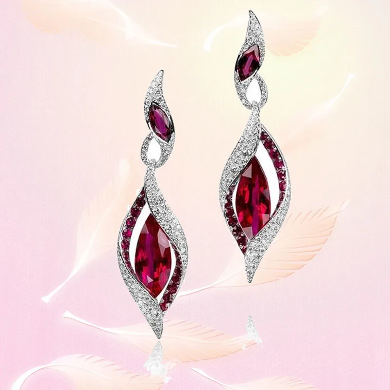 Сапфировые изысканные серьги, рубиновые ювелирные изделия, блестящи...