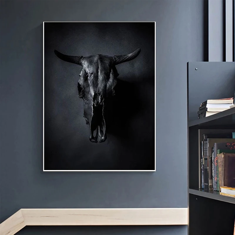 Настенная Картина на холсте с изображением черного быка, черепа, животных