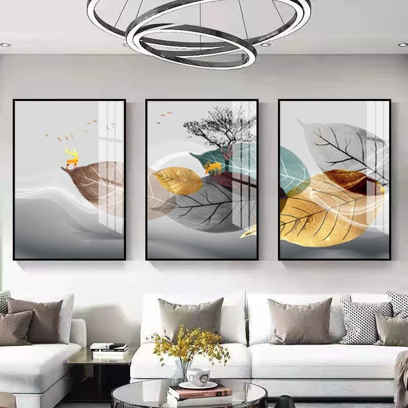 Картина для столовой в скандинавском стиле, маленький свежий декор для гостиной, триптих с листьями, Настенная роспись для спальни
