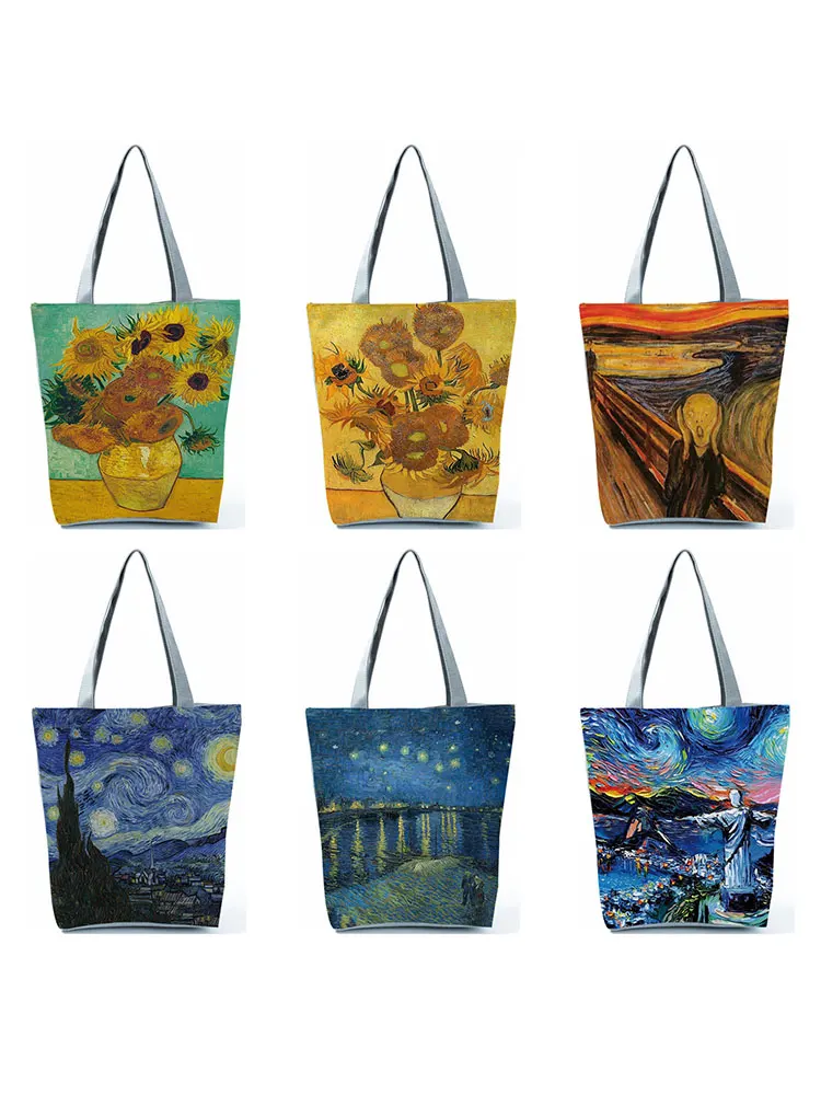 Сумка женская с принтом масляной живописи, саквояж на плечо, вместительная пляжная дорожная Сумочка для покупок, уникальный тоут в стиле пейзажа