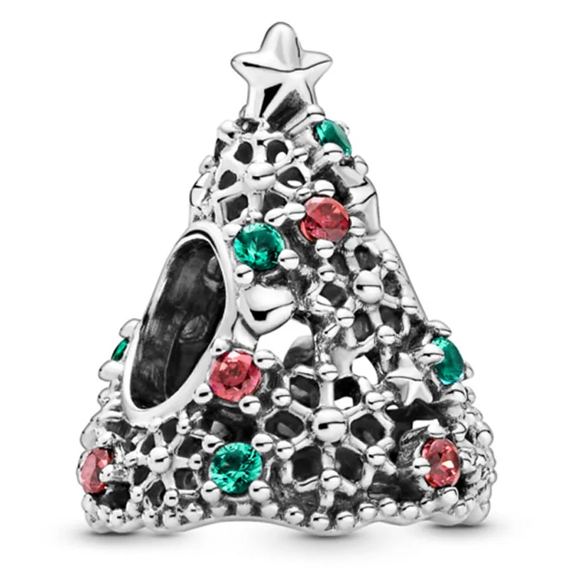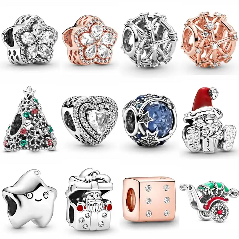 Браслет со сверкающими звездами, снежинкой, рождественской елкой, выравнивающими сердцами, сидячим Сантой, бусинами, подвеска из стерлингового серебра 925 пробы, модные ювелирные украшения