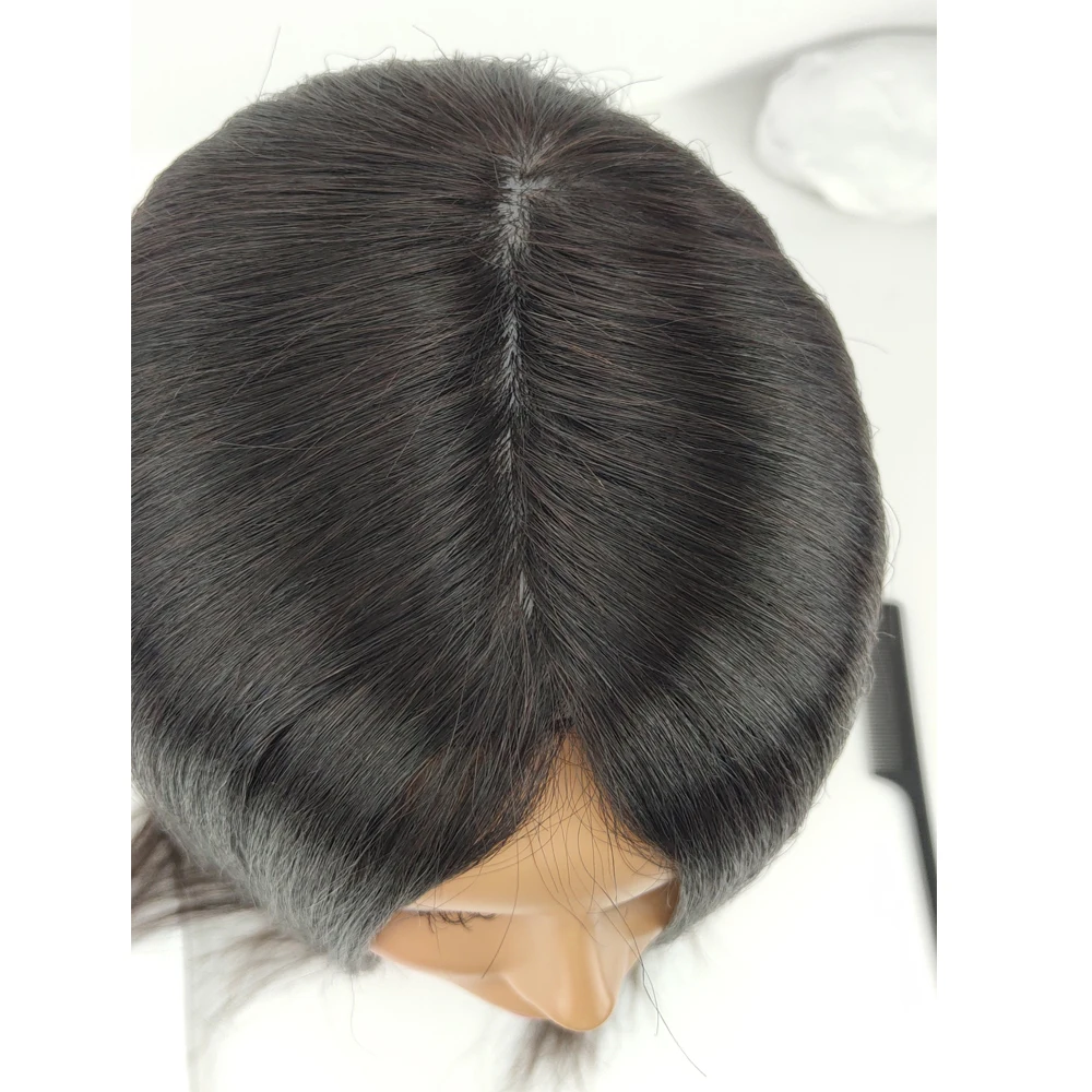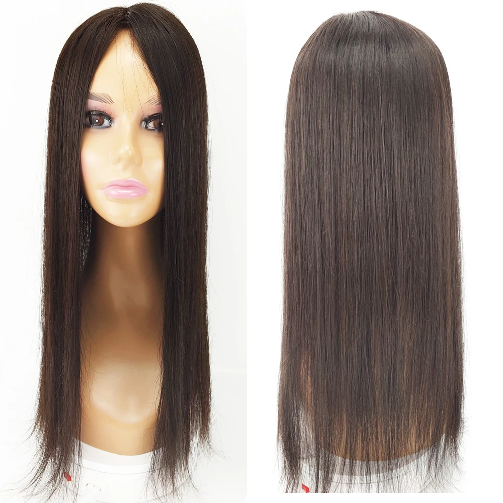 Накладка из длинных прямых человеческих волос 6 дюймов х 6 дюймов, 4 заколки по периметру, шелковые топы, кусочки волос для женщин, Воздухопроницаемый Шелковый Топ, европейские волосы
