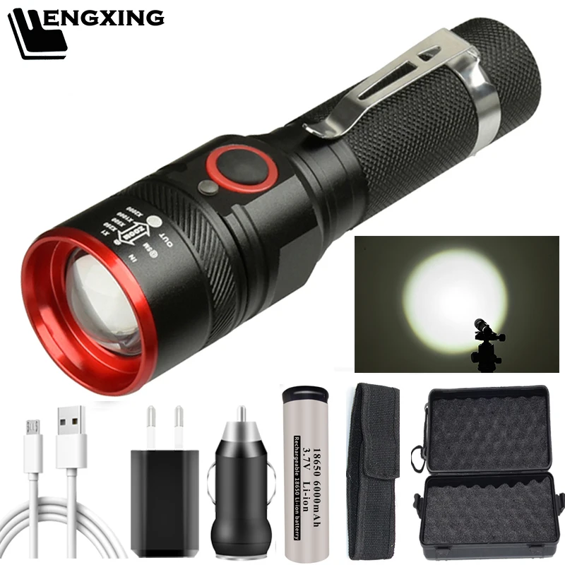 Светодиодный фонарик XM-L T6, 18650 лм, USB, перезаряжаемый, алюмин...