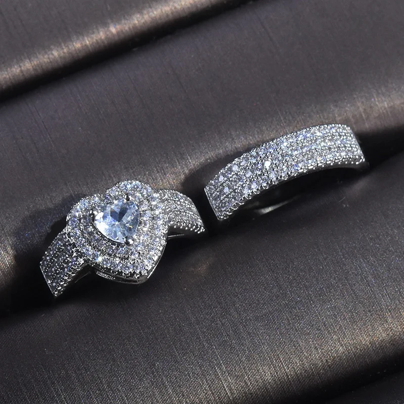 Набор женских колец из серебра 925 пробы, с сердцем из циркония