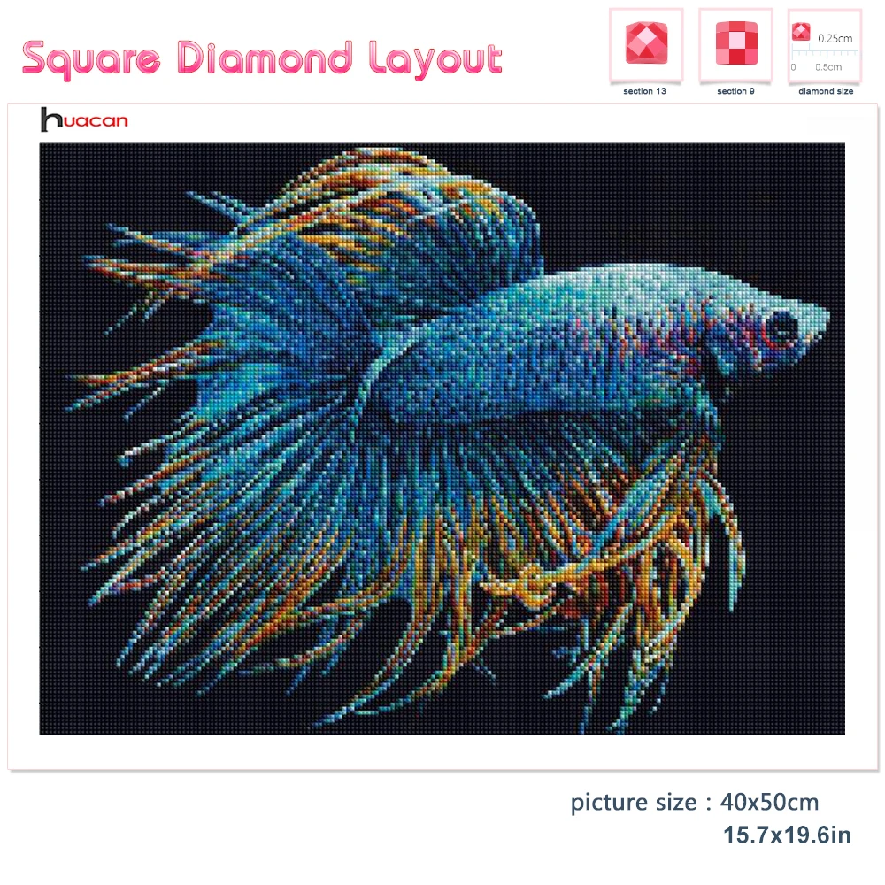 Алмазная 5d картина Huacan с изображением рыбы, квадратакруга, алмазная вышивка, животное, мозаика, вышивка крестиком, домашний декор