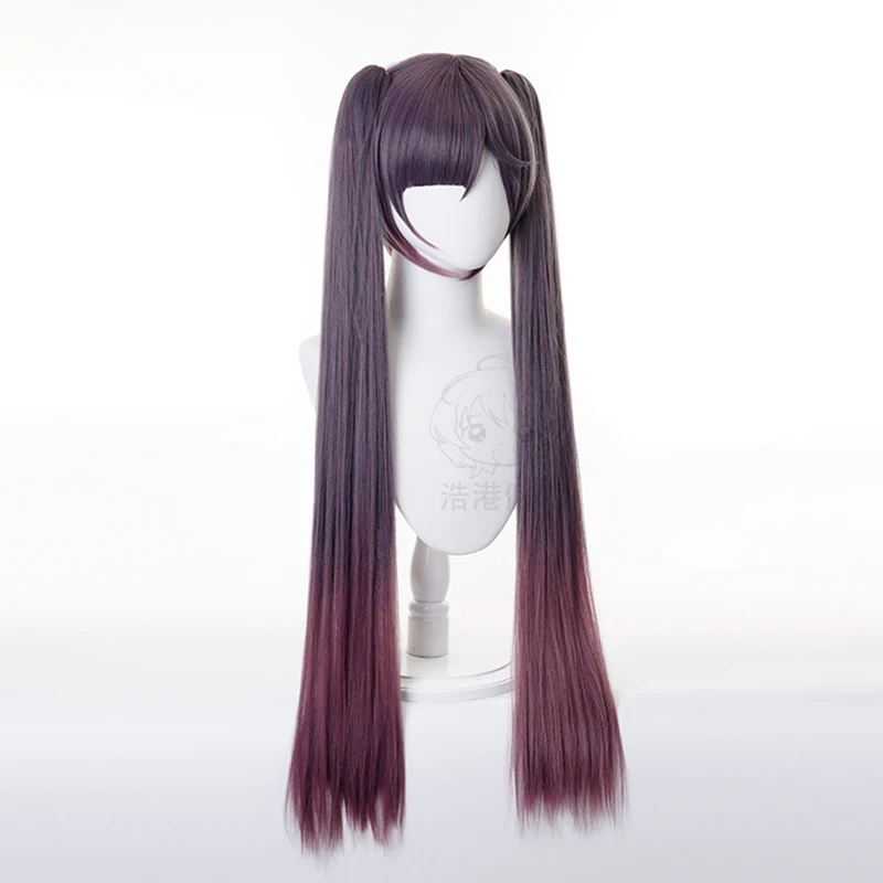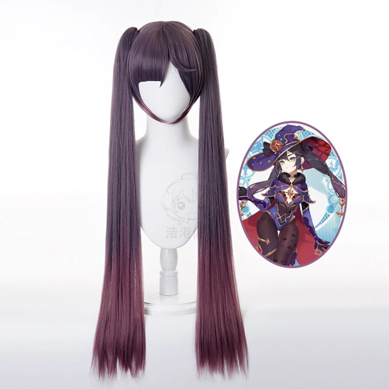 Парик для косплея Genshin Impact Mona, Длинные чернильные фиолетовые термостойкие синтетические волосы длиной 85 см, парики для косплея + шапочка для парика