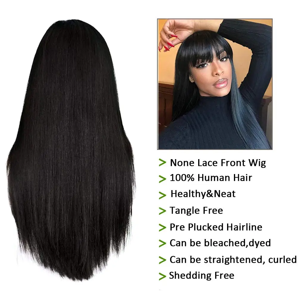 Парики Pelucas Натуральные Прямые из натуральных человеческих волос с челкой, парики без шнуровки спереди, парики без Клея машинной работы для черных женщин