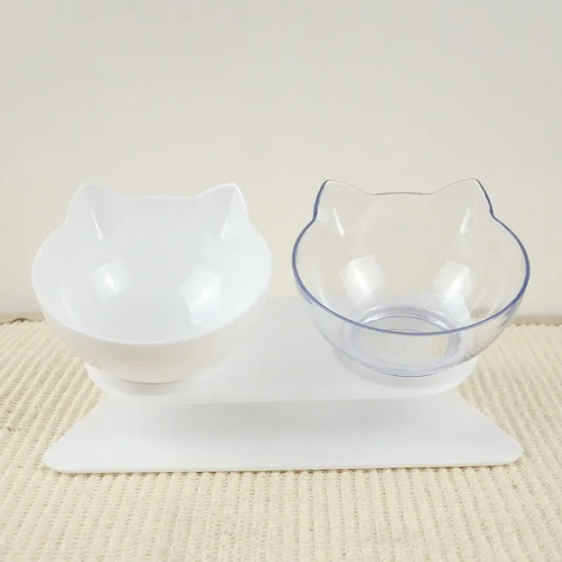 Нескользящая двойная миска с подставкой для кормления кошек с защитой шейного отдела позвоночника, прозрачная кормушка для кошек, товары и принадлежности