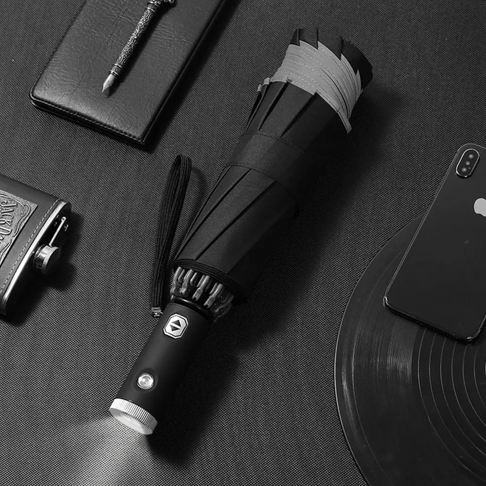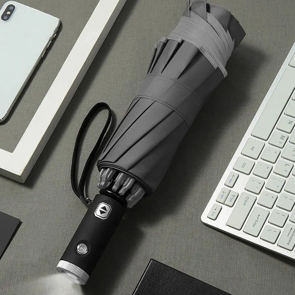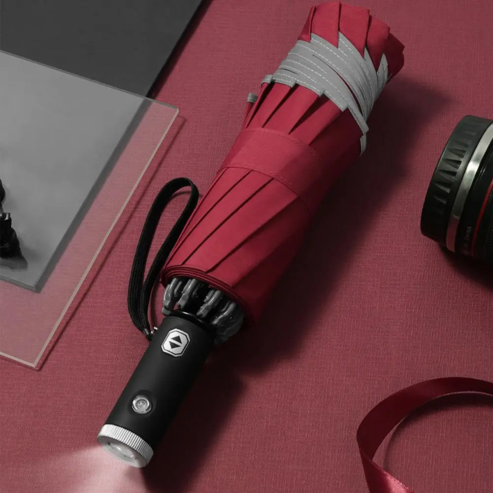 Автоматический зонт Xiaomi со светоотражающей полосой, светодиодный Зонт с фонарем заднего хода, складной, инвертированный, 10 ребер, для деловых людей