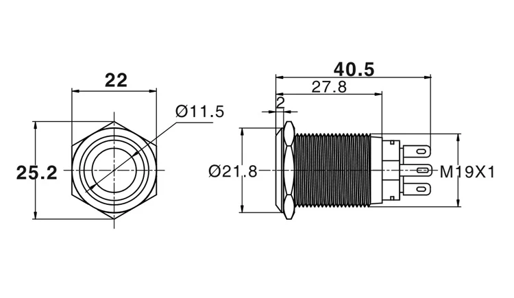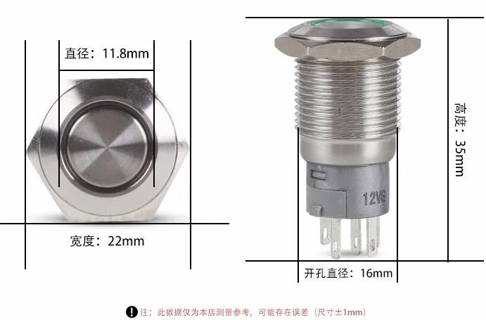 1 шт. 19 мм водонепроницаемый металлический светодиодный моментальн...