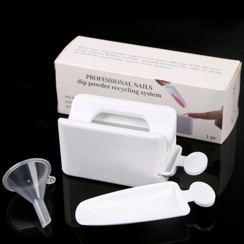 Безопасный контейнер для порошка для ногтей, лоток для переработки, два яруса с воронкой, Dip & Glitter Powder Nails Art Recovery Box Saver