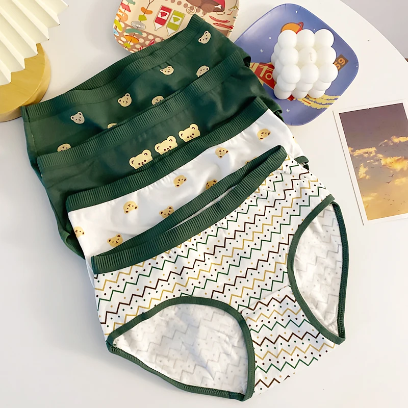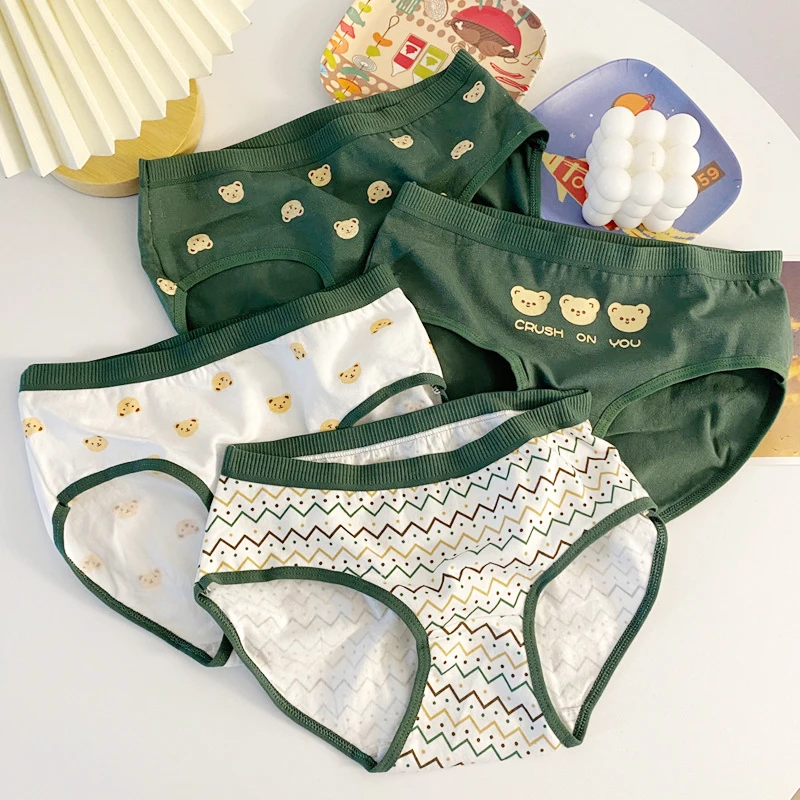 Японское нижнее белье с милым медведем для девушек, зеленое хлопков...