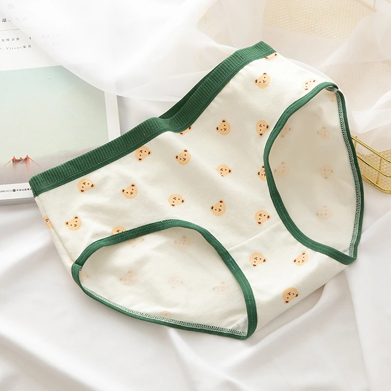 Нижнее белье женское рисунок с милым медведем, хлопковые трусы зеле...