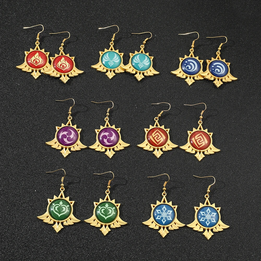1 пара аниме серьги для женщин Genshin Ударный элемент видение Бог ...