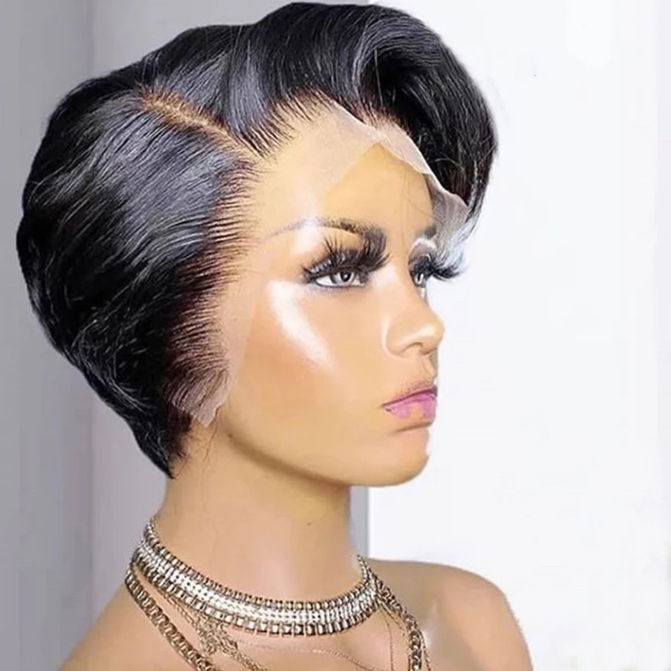 Парик для чернокожих женщин, прямые короткие волосы с прозрачной кружевной стрижкой, часть сетки 13 х1, с боковой частью