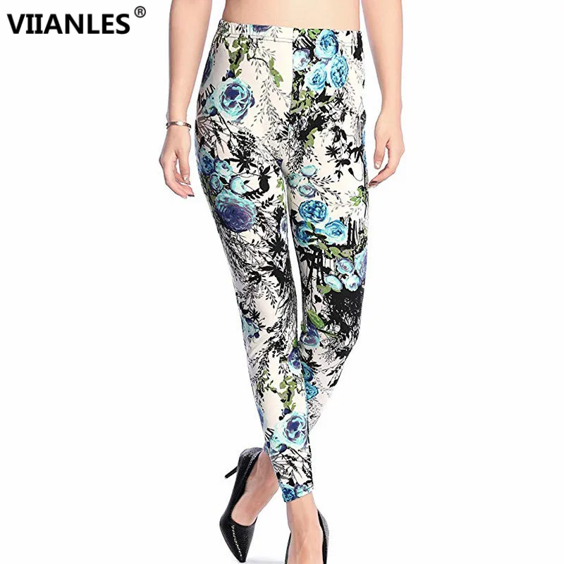 Сексуальные брюки VIIANLES, горячая Распродажа 2022, леггинсы с цветочным принтом, леггинсы, тонкие клетчатые брюки, модные женские леггинсы