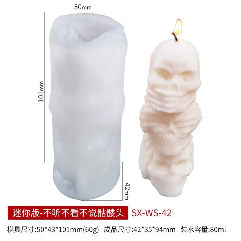 Бесшумная силиконовая форма в виде скелета для свечей для украшения рабочего стола ручной работы, силиконовая форма в виде свечи для ароматерапии из гипса и эпоксидной смолы