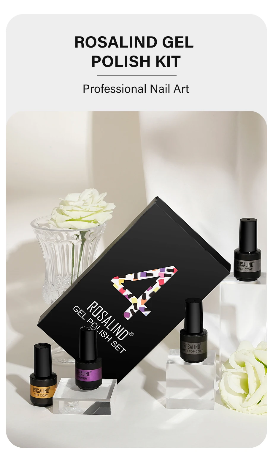 Базовое покрытие для ногтей ROSALIND набор гель-лаков для ногтей, полуперманентный праймер для ногтей, матовое верхнее покрытие, Базовое покрытие, Гель-лак для ногтей