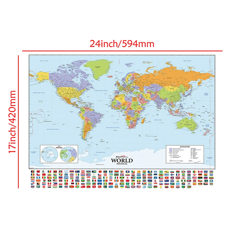 59*42 см политическая карта мира с национальными флагами небольшой ...