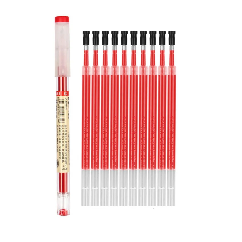 11 шт.лот 0,35 мм Ультра тонкая гелевая ручка с черными, синими и красными чернилами стержни гелевая ручка для школы офиса экзамена канцелярские принадлежности