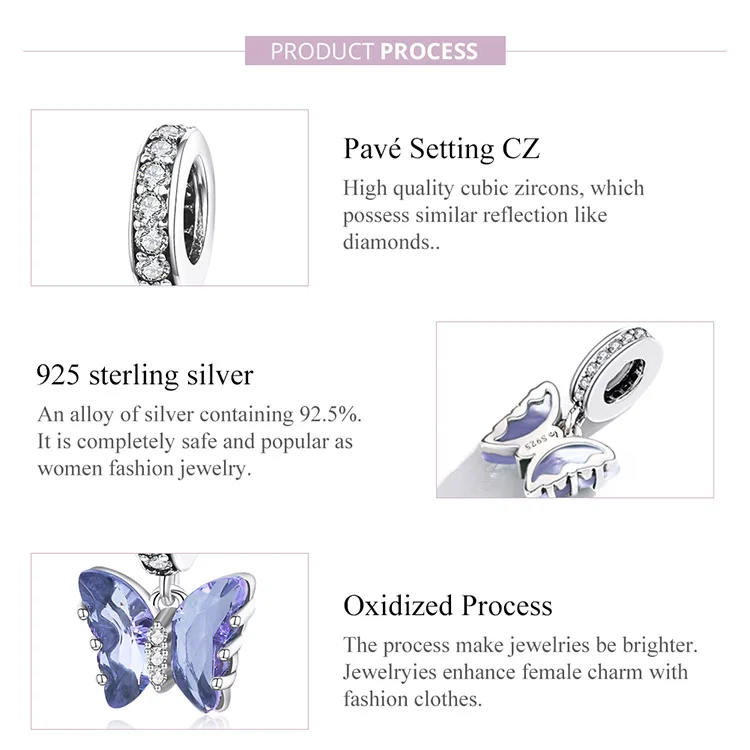 WOSTUгорячая распродажа, Стерлинговое Серебро 925 пробы, Бабочка, пчела, сияние, кристалл, CZ, шарм, подвеска из бисера, подходит для оригинального браслета, сделай сам, изысканное ювелирное изделие