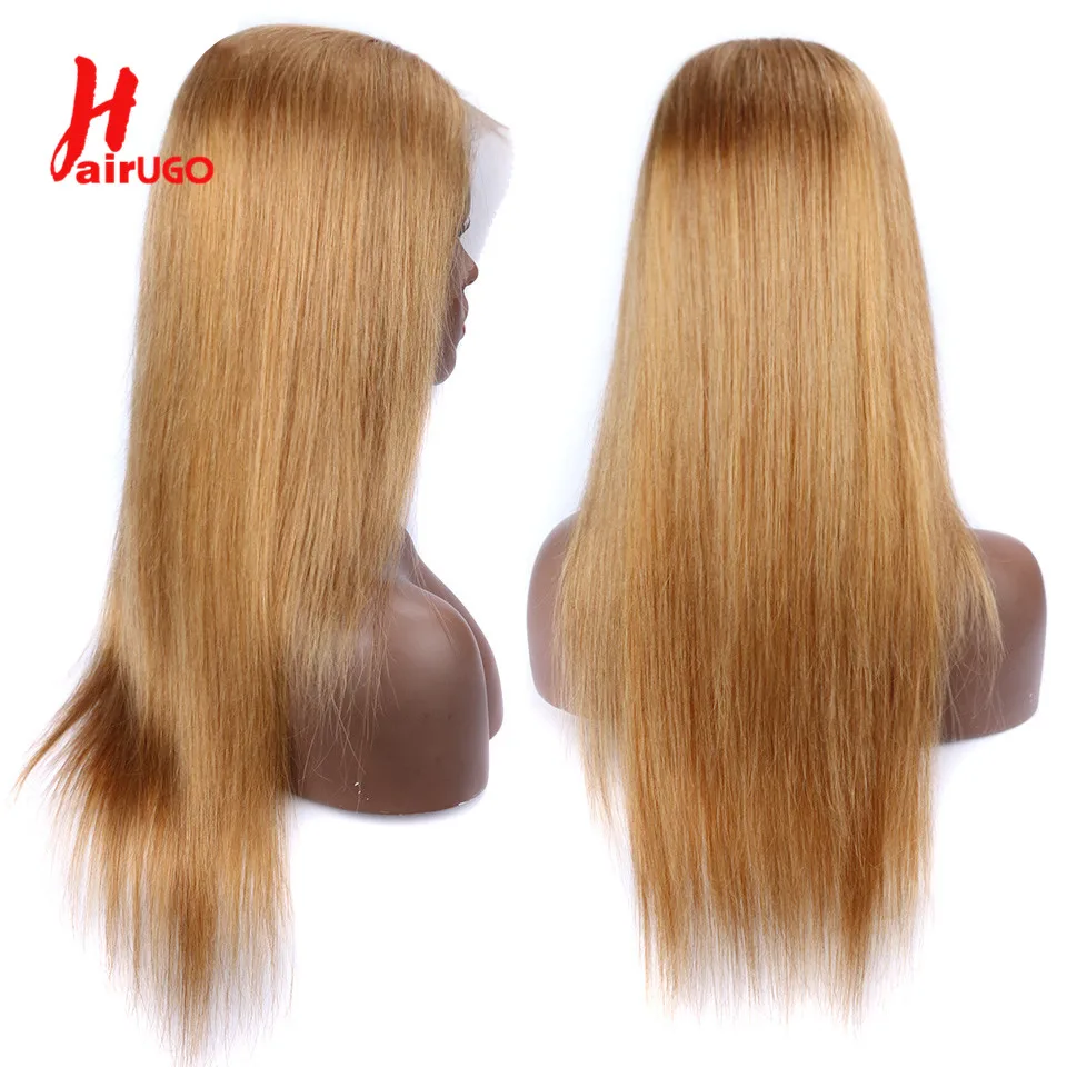 Парики HairUGo 27 # медово-светлые, 13x1 T, парики на сетке, предварительно выщипанные, Remy, бразильские прямые человеческие волосы с эффектом омбре, парики 180%