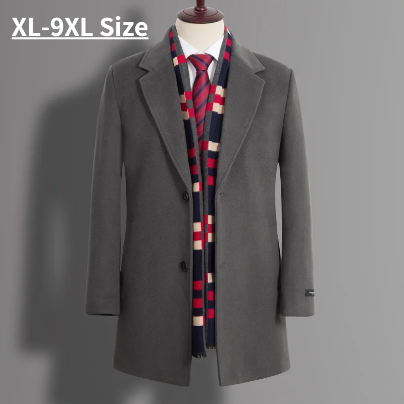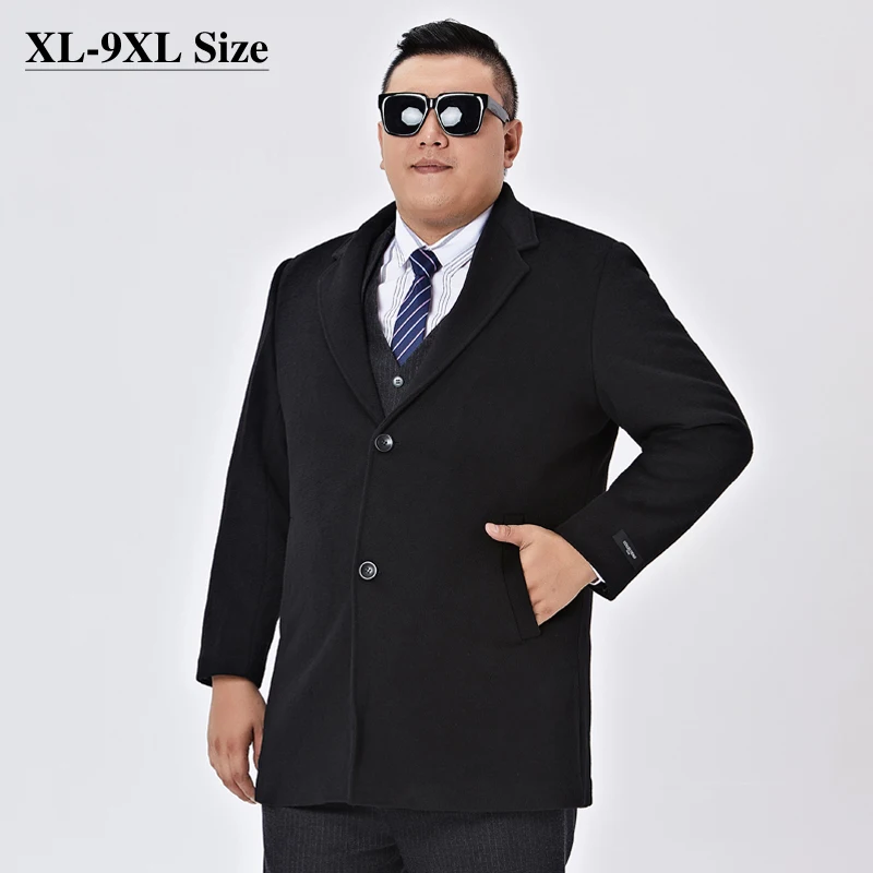 Мужское длинное шерстяное пальто размера плюс 5XL, 6XL, 7XL, 8XL, н...