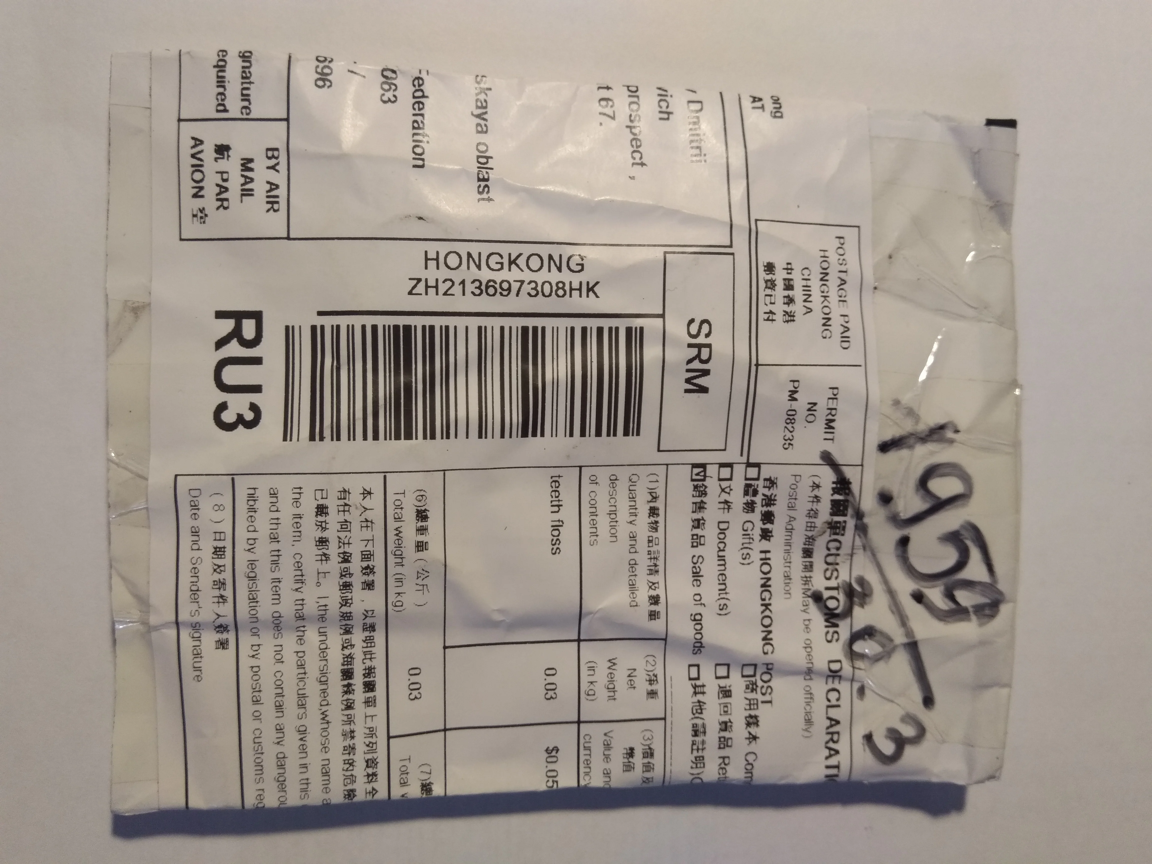 Страна: RU Color: white Доставка: Cainiao Super Economy 29.04.2022