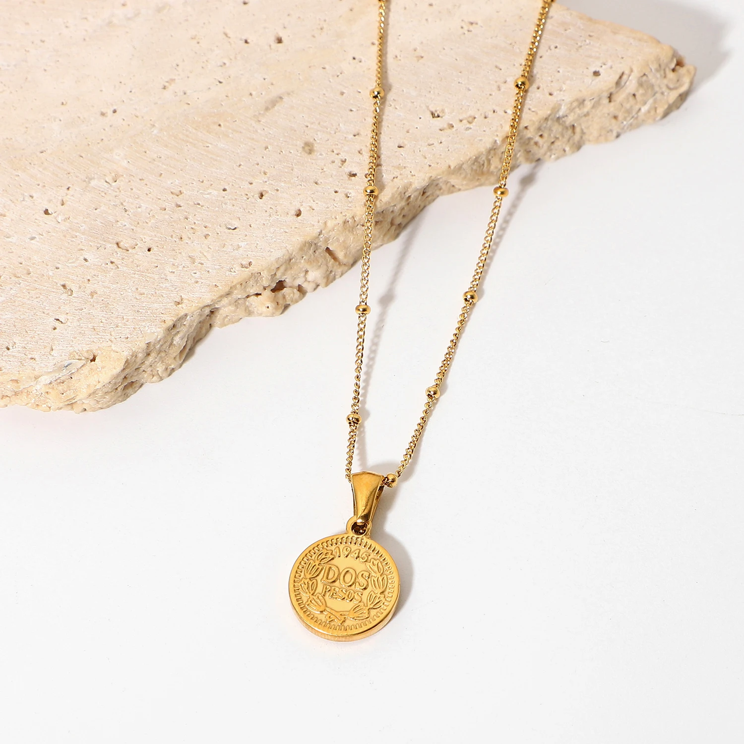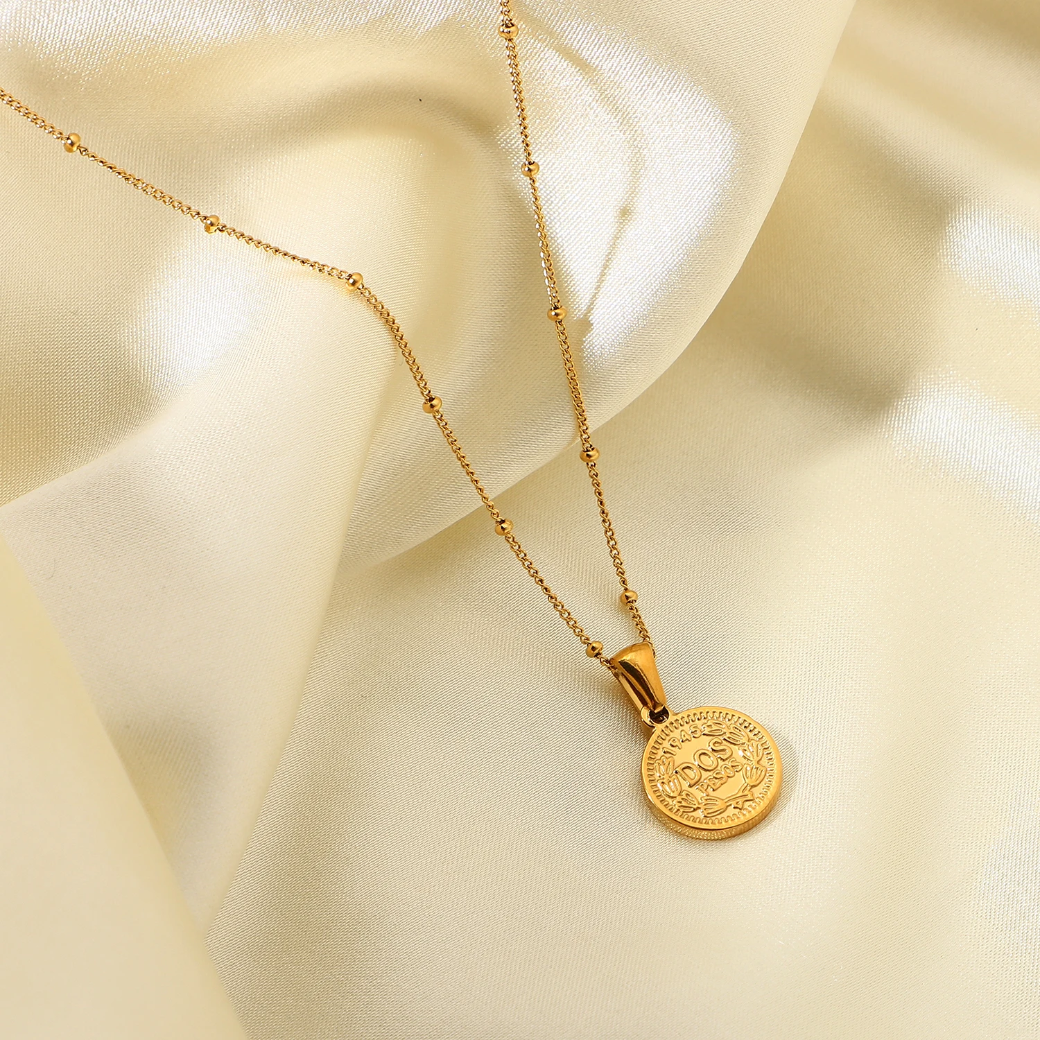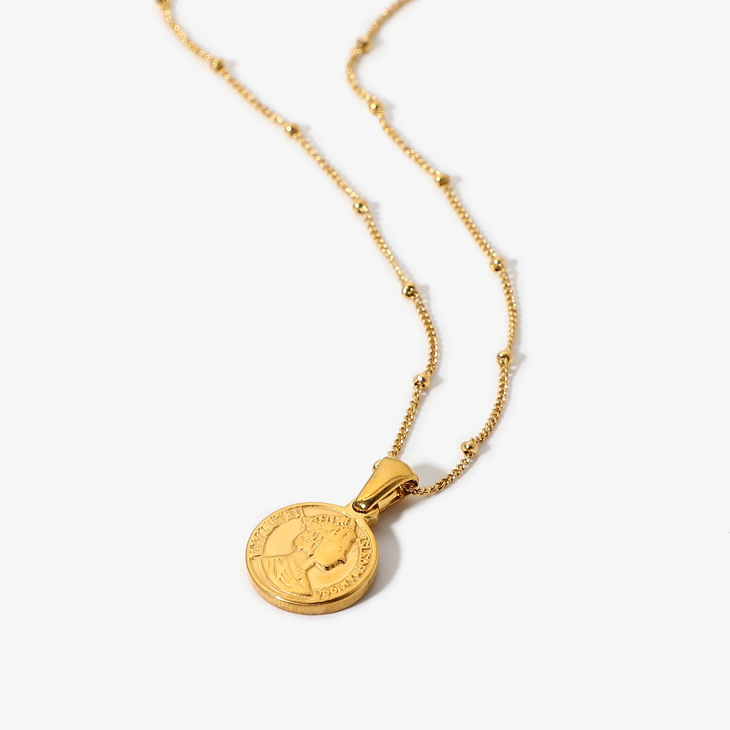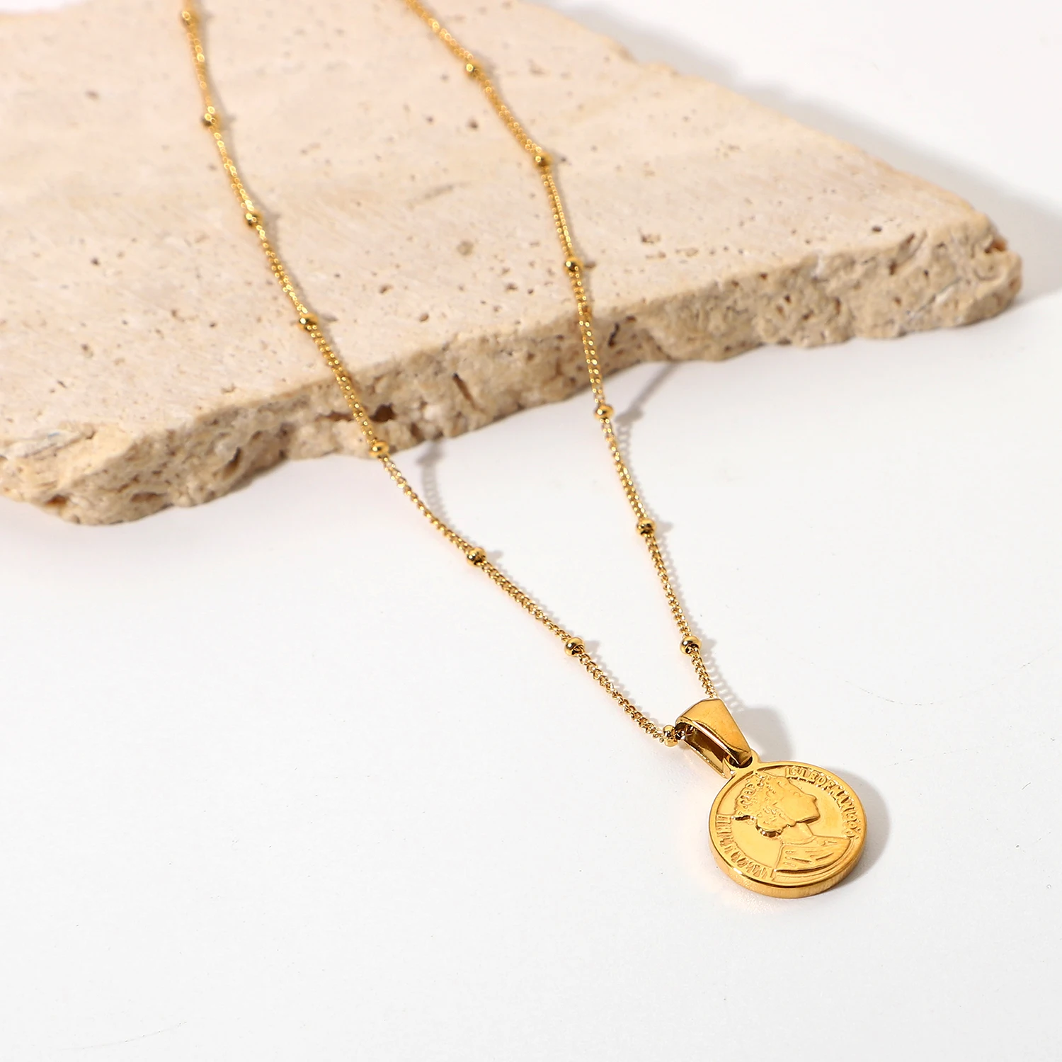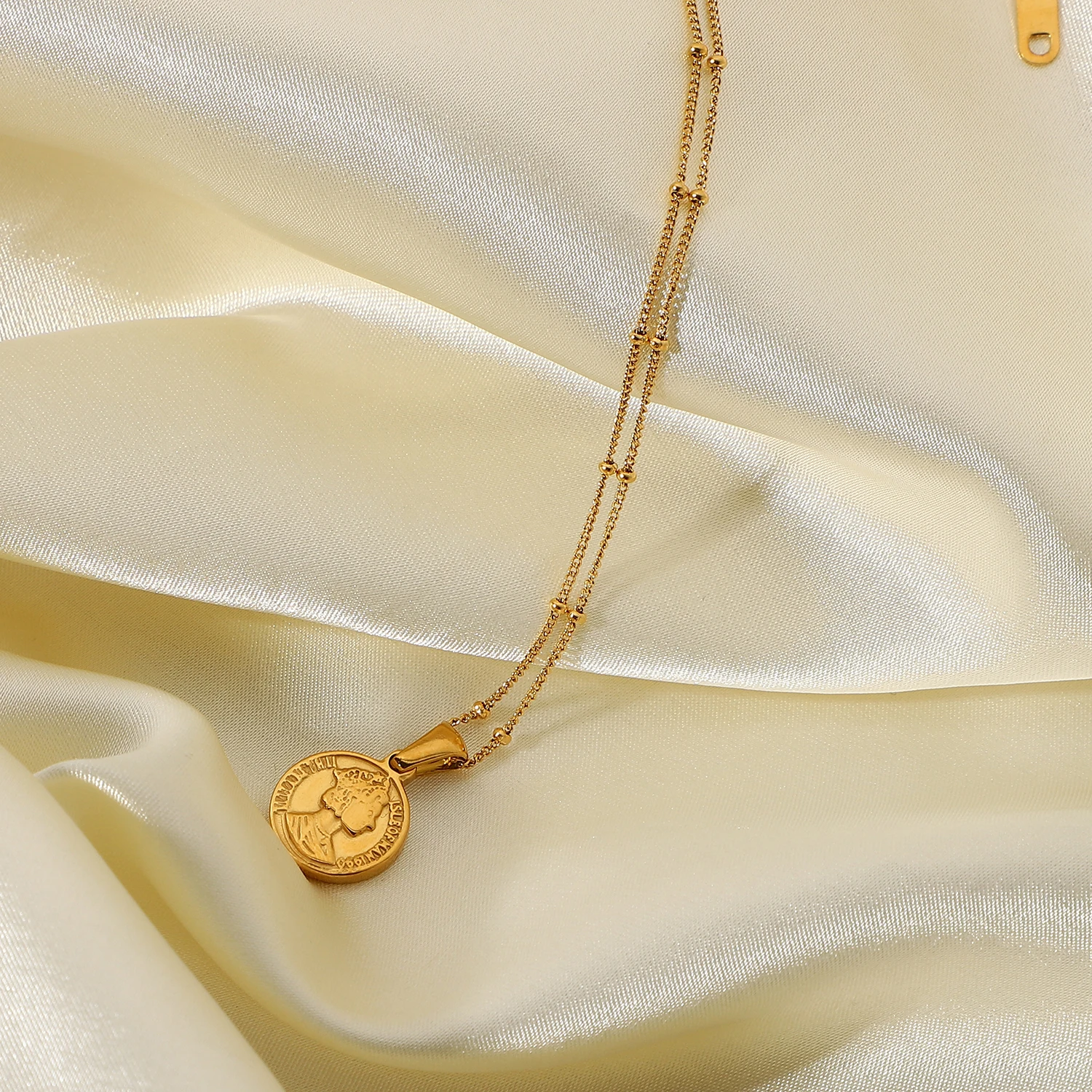 Двойное рельефное тисненое ожерелье с головой королевы елипы для монет для женщин Позолоченное колье из нержавеющей стали ювелирные изделия
