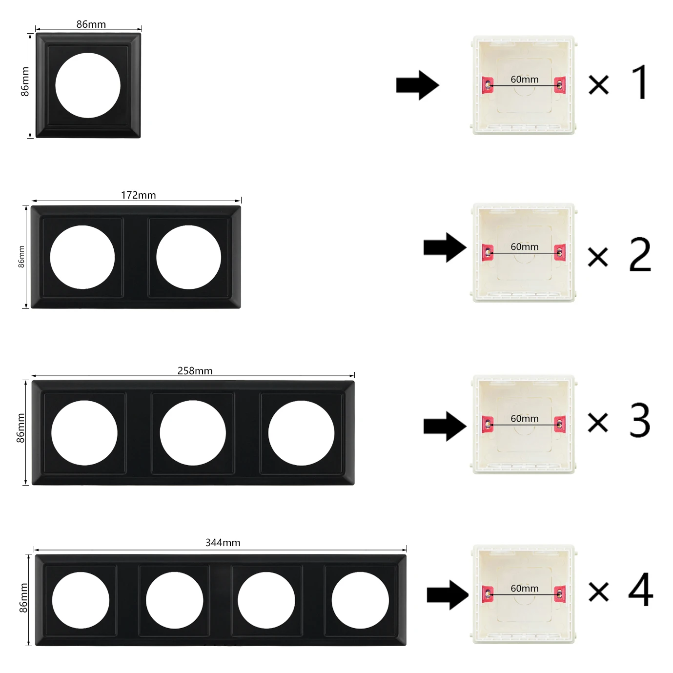 1. Тип товара: переключатель/модуль розетки/рамка2. Цвет: черный3. Материал панели: пластик4. Номинальное напряжение: 110-250 В5. DE/Французский модуль Номинальный ток: 16A6. Универсальный модуль номинального тока: 13A7. Номинальный ток usb-модуля: около 2,1 А (медленная зарядка)8. RJ45 / Network / HDMI-совместимость и т. Д. Номинальный ток: слабый ток9. Размер оправы:1 шт.: 86 мм * 86 мм2 шт.: 172 мм * 86 мм3 шт.: 258 мм * 86 мм4 шт.: 344 мм * 86 мм