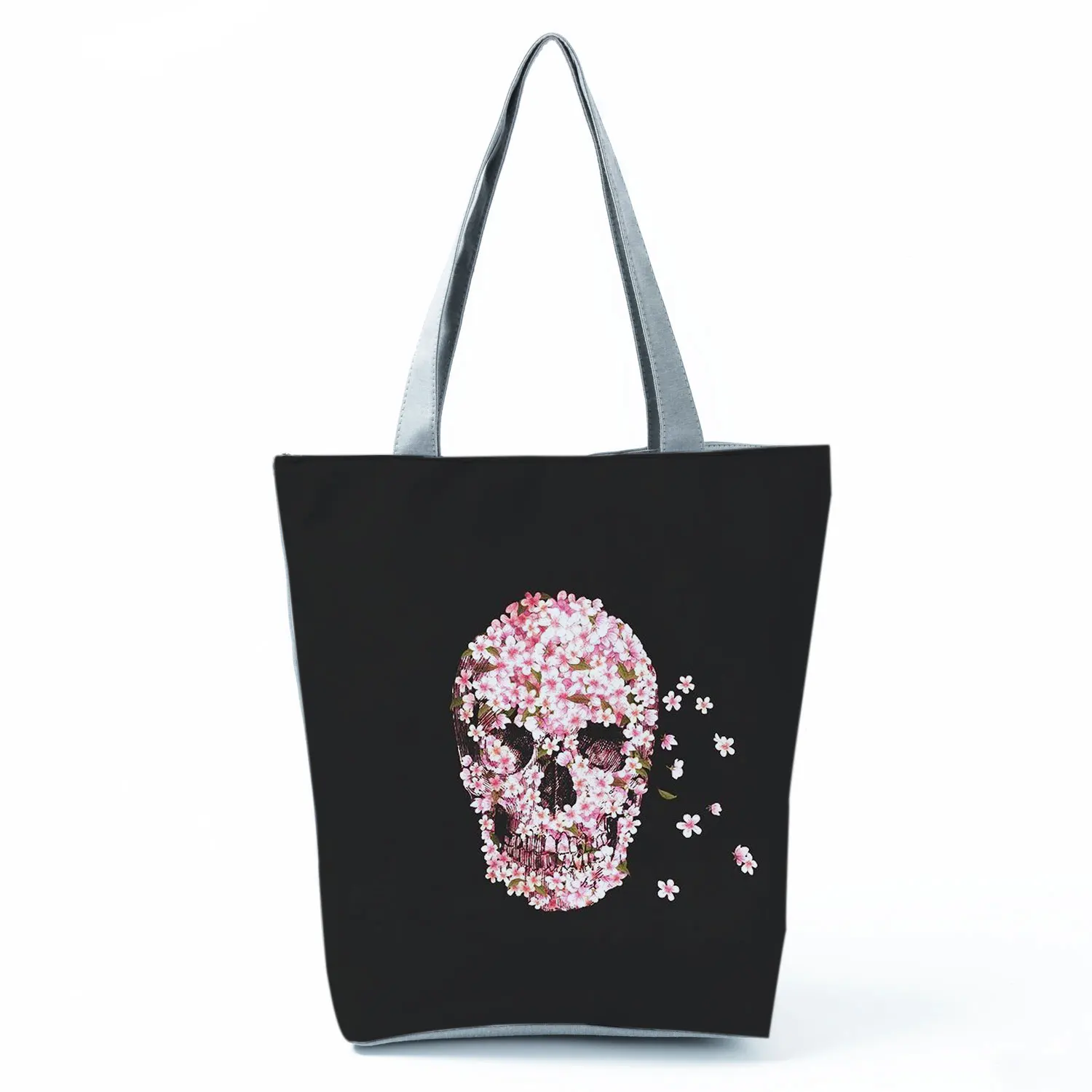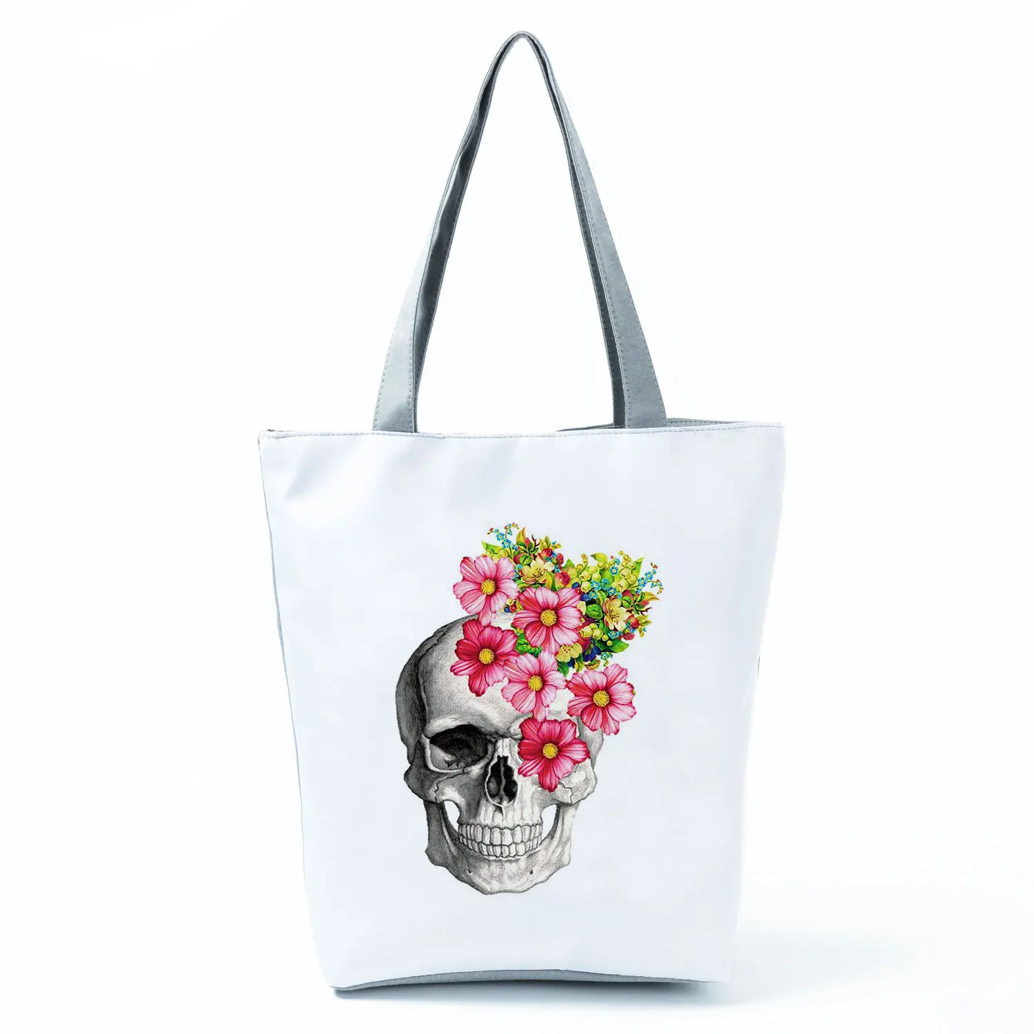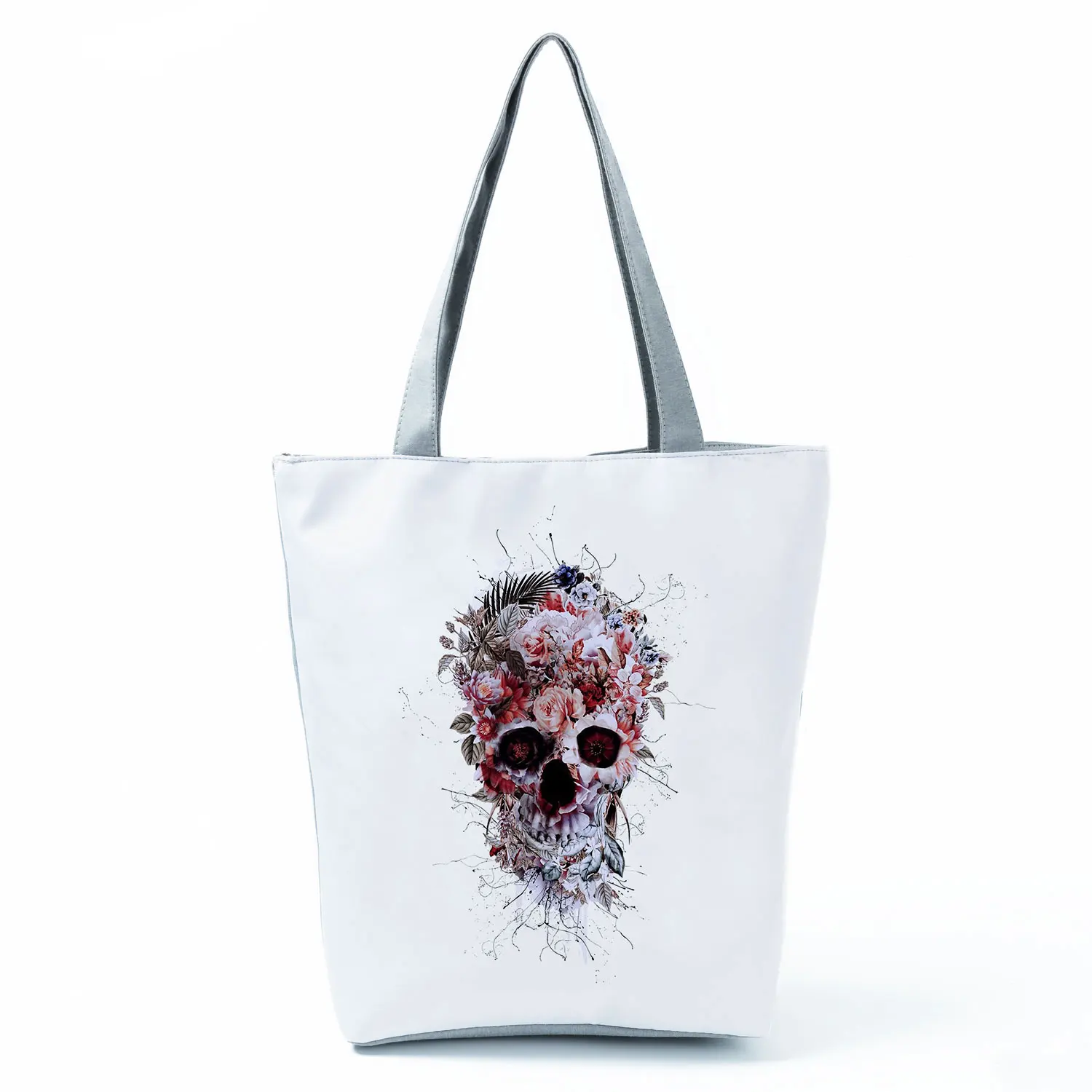 Сумки на молнии в стиле ретро с принтом черепа и цветов на Хэллоуин, большие сумки на плечо для женщин, портативная дорожная сумка, Повседневная сумка для покупок