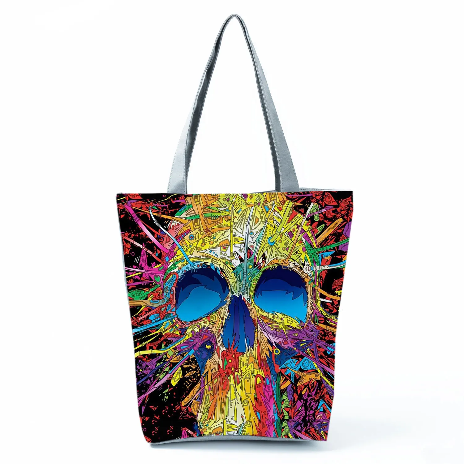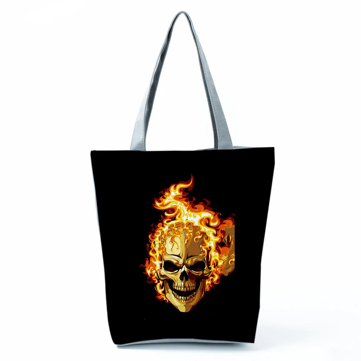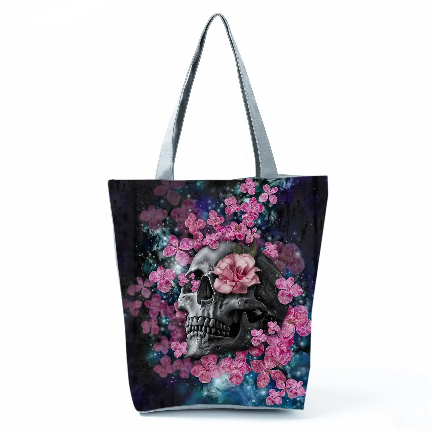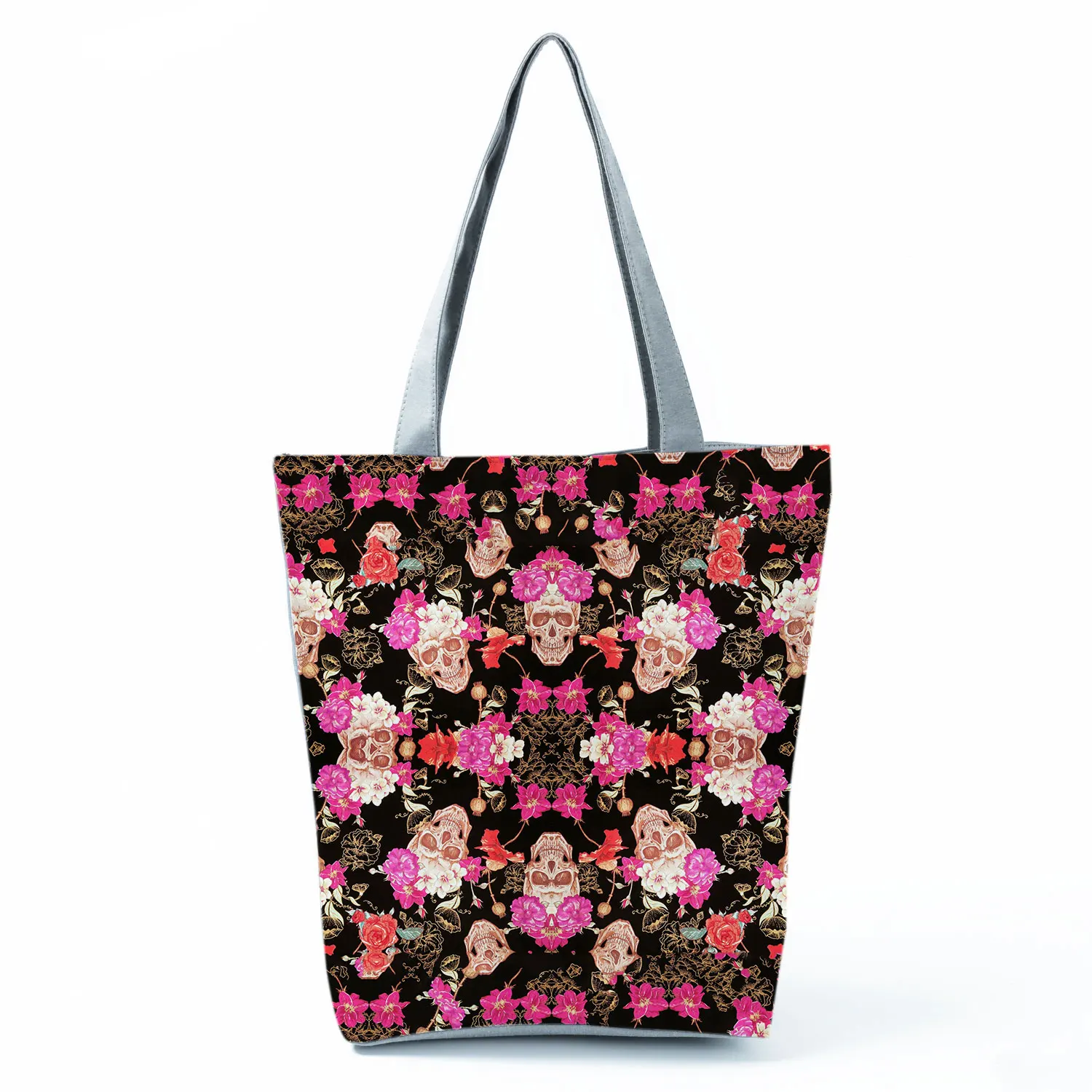 Сумки на молнии в стиле ретро с принтом черепа и цветов на Хэллоуин, большие сумки на плечо для женщин, портативная дорожная сумка, Повседневная сумка для покупок