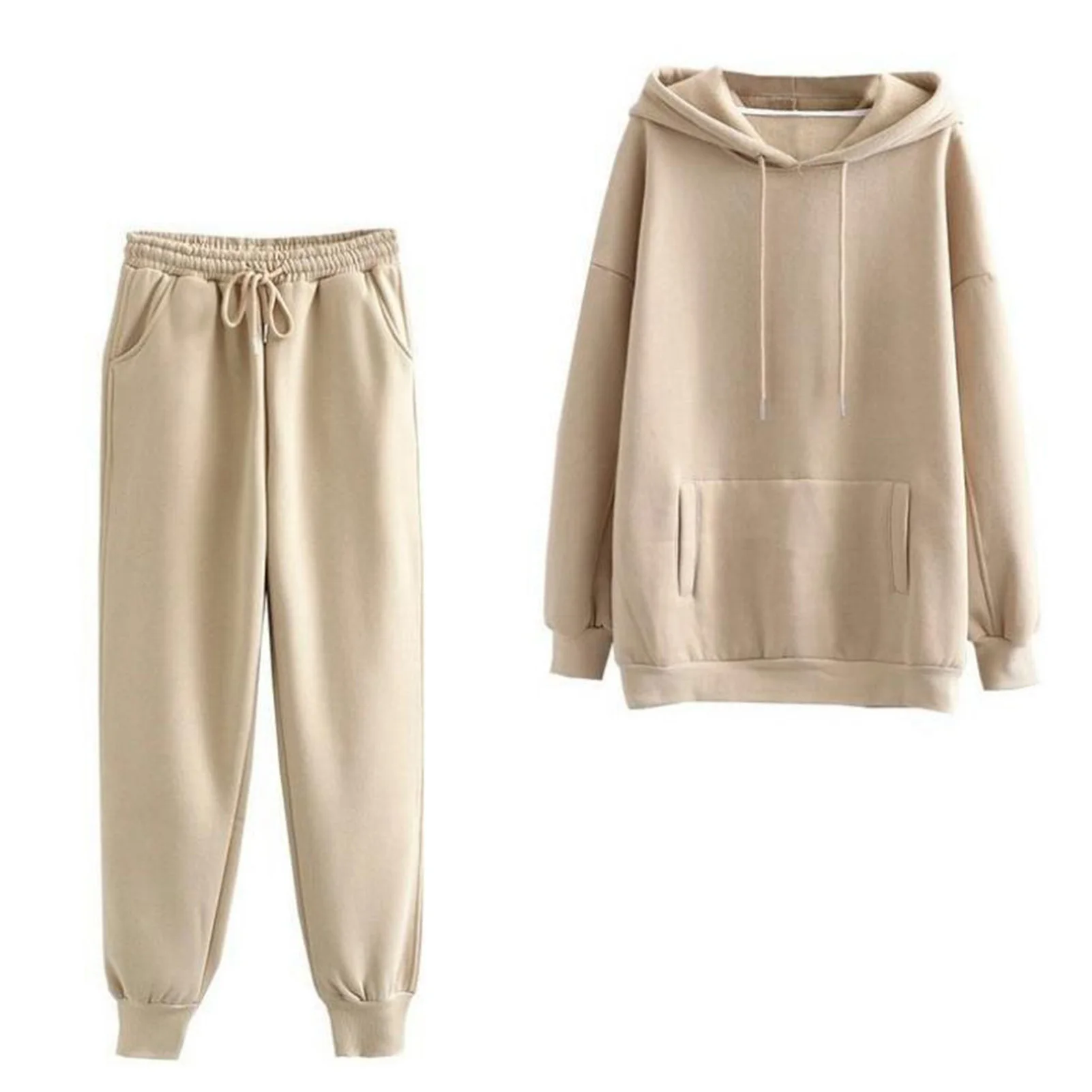 Однотонный женский комплект из двух предметов, свитшот с капюшоном и длинными рукавами и карманами, брюки с эластичным поясом, уличная одежда
