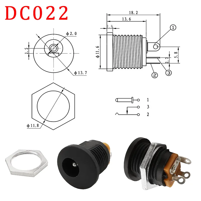 Номер моделиDC-022 5.5 x 2.1mm DC Power Socket connector