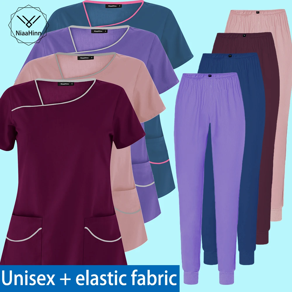 Медицинская Униформа Женская медсестринская одежда из двух предметов скраб одежда для кормления с V-образным вырезом коротким рукавом Быстросохнущий Комплект Одежда для врачей унисекс