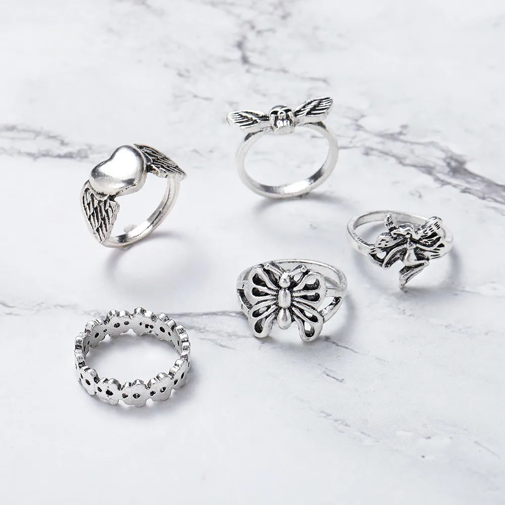 Винтажные серебряные кольца в форме сердца, цепи, бабочки, горячая ...