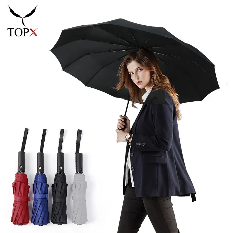 Полностью автоматический зонт с прочной защитой от ветра, 12K, женский портативный Зонт с длинной ручкой в 3 сложения, мужской деловой подарок, зонт