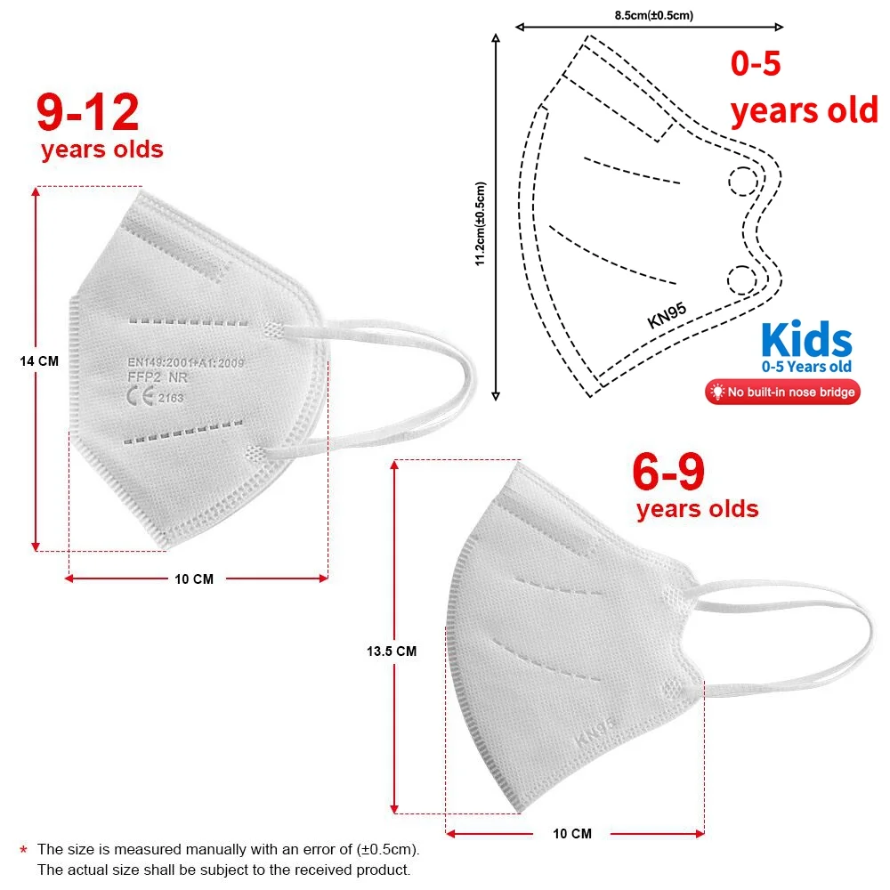 От 0 до 12 лет Детские FFP2 маски 5 слоев kn95 Mascarilla Infantil FPP2 Homologada FFP2mask для детей CE детские маски KN 95