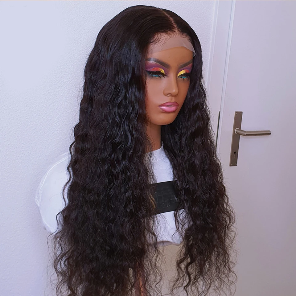 Натуральные черные свободные вьющиеся волоконные передние парики на сетке для чернокожих женщин 26 дюймов длинные волнистые средней части парик на сетке термостойкий синтетический