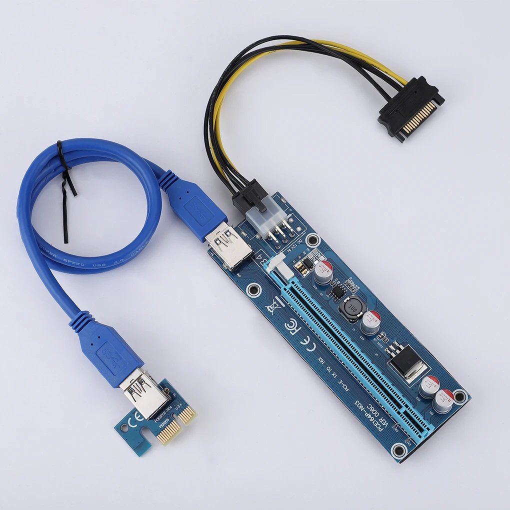 VER006C:Адаптер PCI-E 16X-1 шт.1 x PCI-E 1X подъемная плата.Кабель USB 3,0-1 шт.1 х Кабель питания SATA.