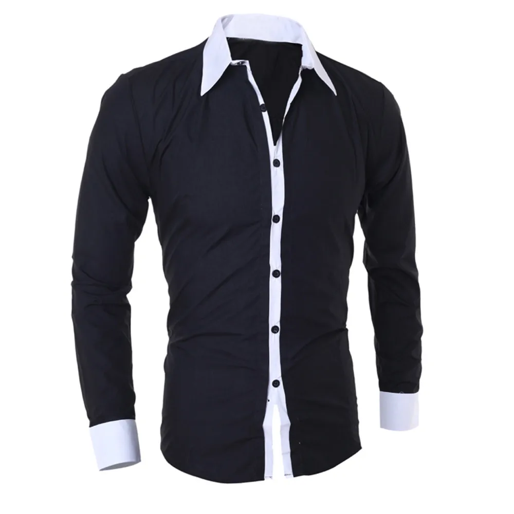 МодаМужская Повседневная тонкая рубашка с длинным рукавом