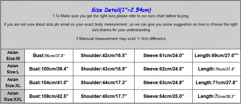 Если вы не уверены вРазмер, пожалуйста, напишите нам ваше точное измерение тела, чтобы мы могли датьВы предлагаете, как выбрать правильный размер, спасибо заВаше понимание