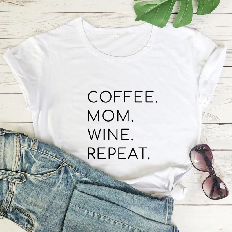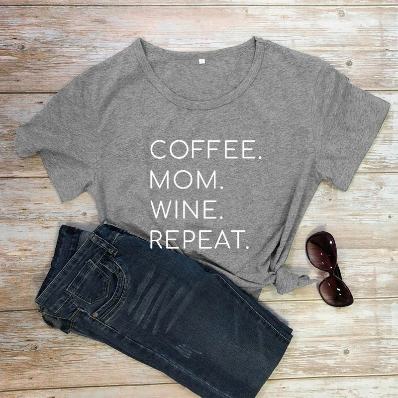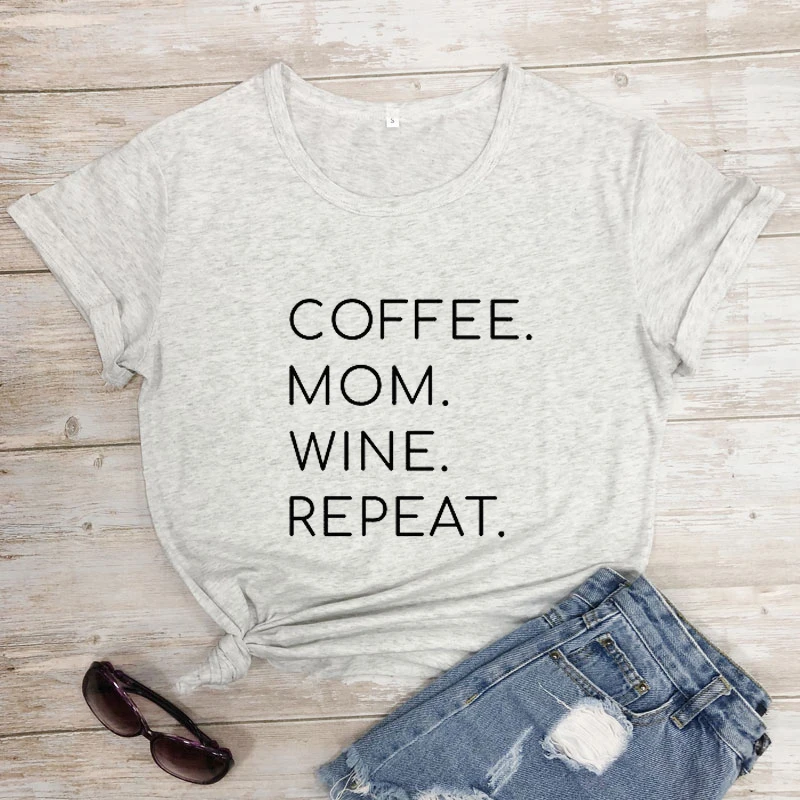 Футболка с надписью Coffee Mom, с принтом вина, забавная футболка для мам, саркастическая Женская Повседневная футболка